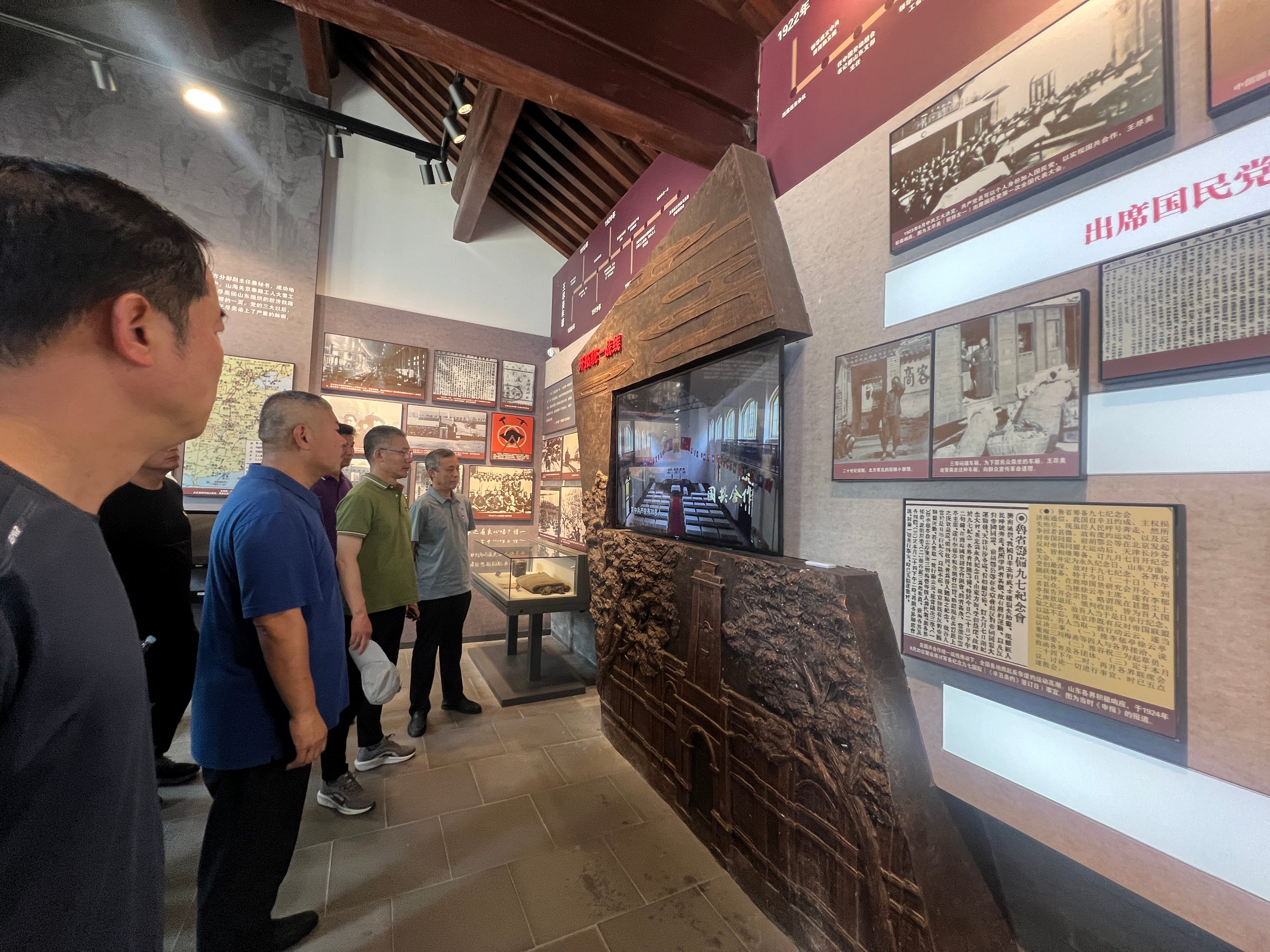 王尽美纪念馆位于潍坊市诸城,当党员们抵达王尽美纪念馆时,首先映入眼帘的是王尽美烈士那庄严肃穆的汉白玉雕像。全体党员整齐排列在雕像前,在领誓人的带领下,党员们高举右手,面向鲜红的中国共产党党旗,郑重地重温入党誓词:“我志愿加入中国共产党,拥护党的纲领,遵守党的章程……”一句句誓词掷地有声,在纪念馆的广场上空久久回荡。每一个字都饱含着党员们对党的忠诚与为人民服务的坚定决心。在讲解员的引导下,党员们依次参观了各个展厅。馆内陈列着大量珍贵的历史文物、详实的文字资料以及生动的图片,通过这些展品,王尽美烈士短暂而辉煌的一生被鲜活地展现在大家面前。